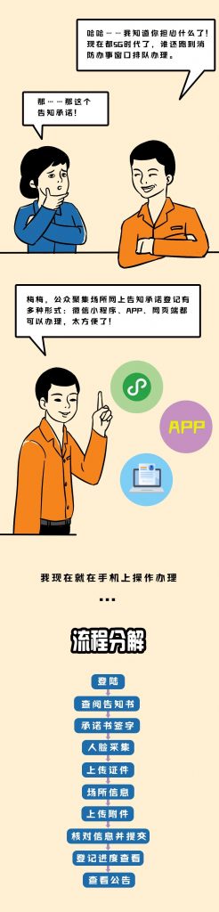 7月6日起,福建省全面实行公众聚集场所消防安全告知承诺制什么是公众聚集场所消防安全告知承诺?如何申请办理?办理流程有哪些?一图速览↓↓↓